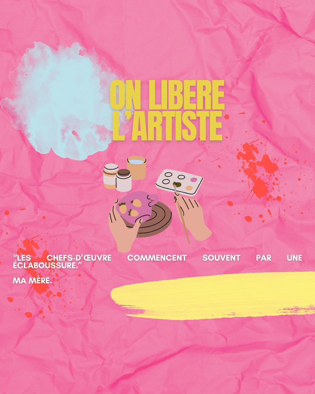 Maintenant, place à la couleur ! Tu choisis tes teintes, et tu te lances. Tu as 2h30 pour faire des pois, des rayures, des fleurs, ou un chef d'oeuvre abstrait que toi seul comprendras - c'est ça la liberté artistique (et un peu le charme du truc).